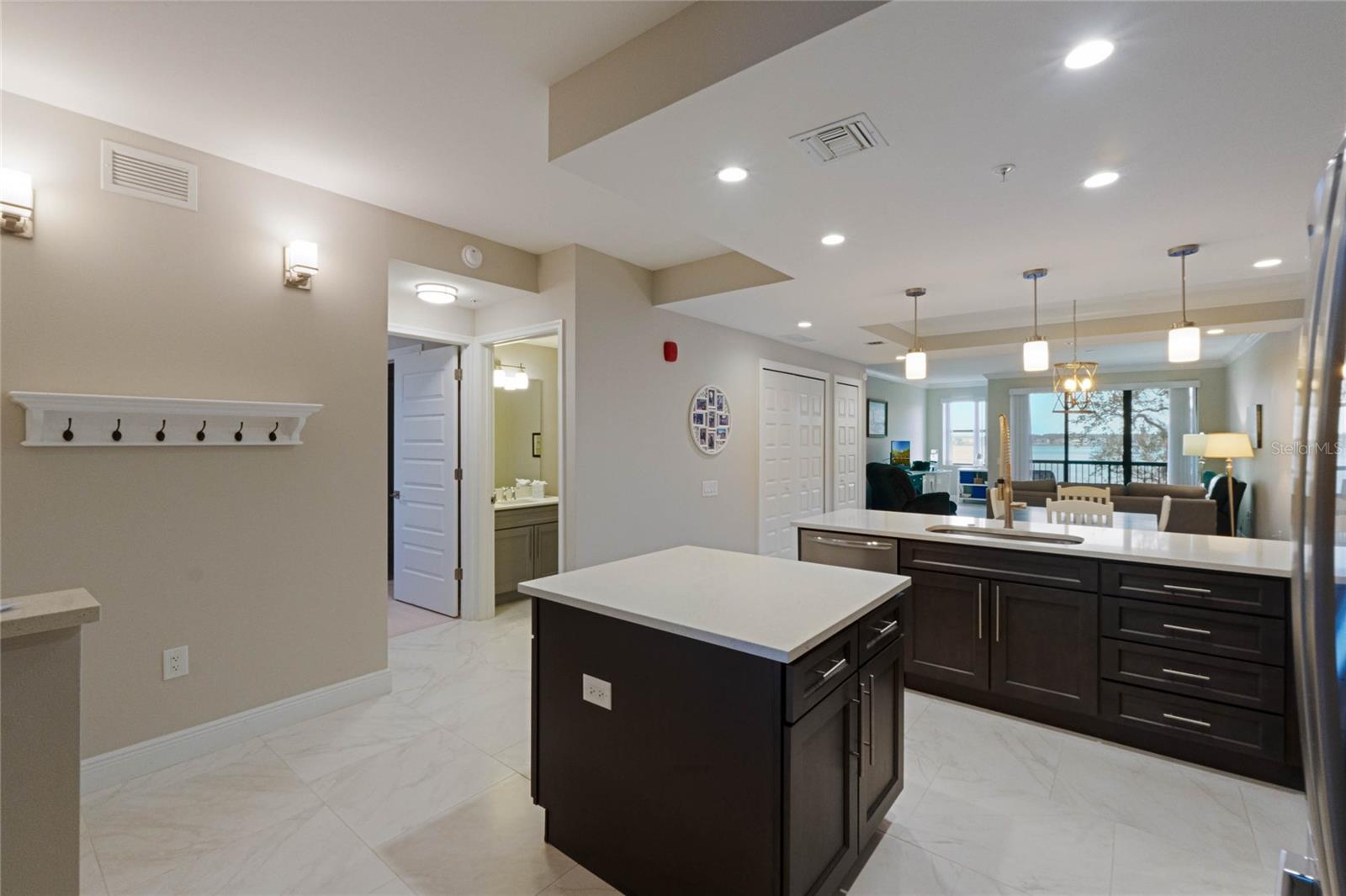 Lakefront living with a lock and go lifestyle of luxury and convenience in highly sought after Siena at Bella Collina. This immaculate, move in ready condo overlooks Lake Siena. Enjoy spectacular sunrise views from your private screened balcony. A perfect place for coffee in the morning or a view of rocket launches in the evening. The open floor plan allows views of the lake from the living room, dining room, kitchen and primary bedroom. The spacious kitchen has a large center island, all new appliances and a breakfast bar overlooking the dining room and adjoining living room. The primary bedroom overlooks the lake with large walk in closet and luxurious primary bathroom with dual sinks, soaking tub and separate shower with seamless shower enclosure. The secondary bedroom is spacious with private ensuite. Resort style amenities that overlook the lake include a heated pool, covered poolside seating, BBQ area and fire pit. There is also a 24 hour fitness center and conference room availability for your use. Access to the Spa at the Club at Bella Collina, 2 restaurants, culinary events and social activies are all included along with wifi, cable and water for a complete care free and luxury experience. Secured and gated with 2 assigned parking spaces ensure you always have a place to park along with ample additional parking for guests. There are 2 elevators in the building and the unit is located on the third floor which connects to the second condo tower that houses the hotel floors available for any overflow guest. HVAC, stove, microwave and refrigerator are all new in 2024. Conveniently located with quick access to the Turnpike, 429, 408. Just over a mile from Montverde Academy, The attractions are just minutes away as well as the downtowns of Orlando, Winter Garden and Clermont providing plenty of shopping and dining options. Come make this your own and start living the Bella Collina lifestyle.