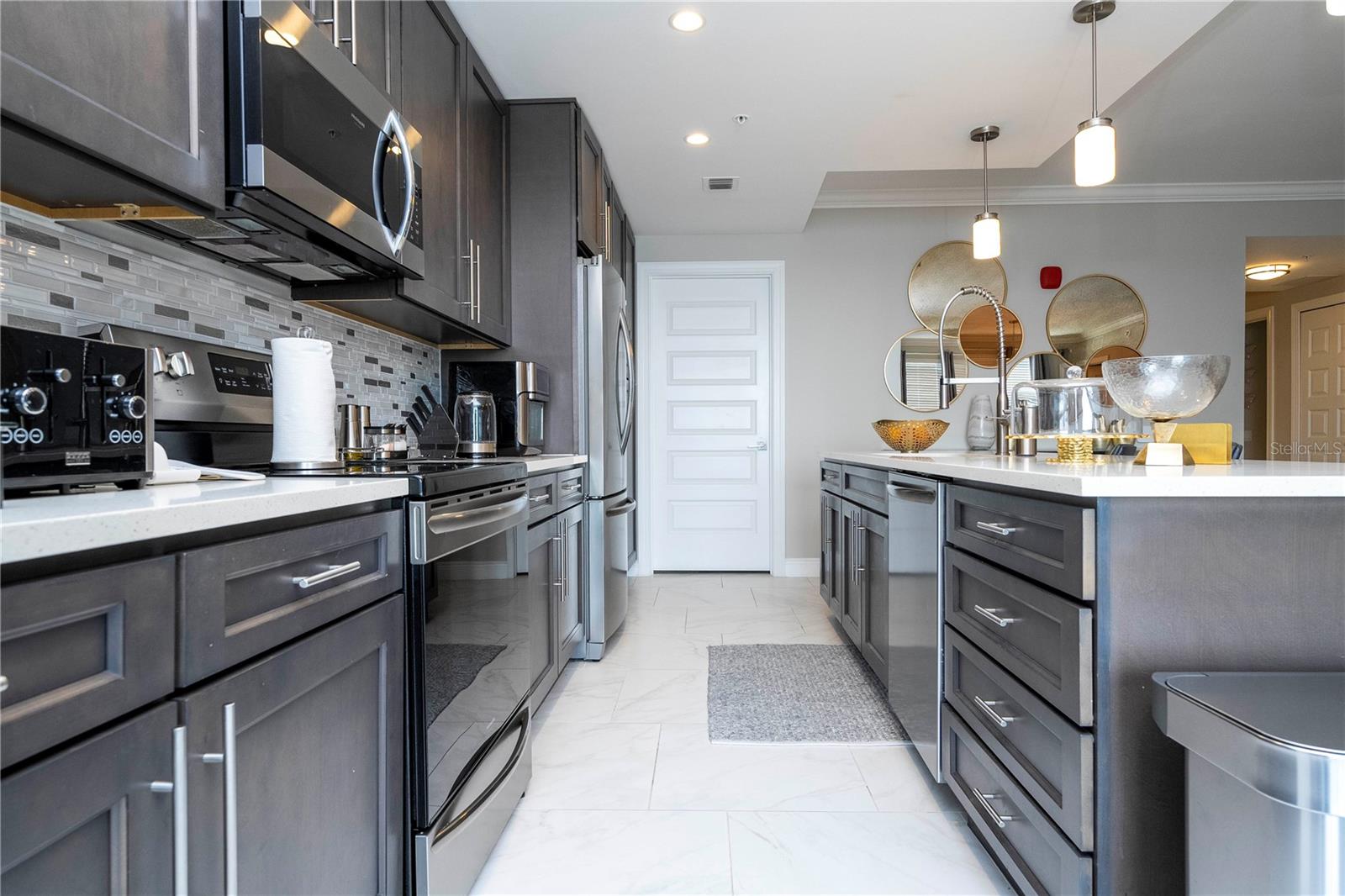 Cooktop, Dishwasher, Disposal, Dryer, Electric Water Heater, Microwave, Range, Refrigerator, Washer