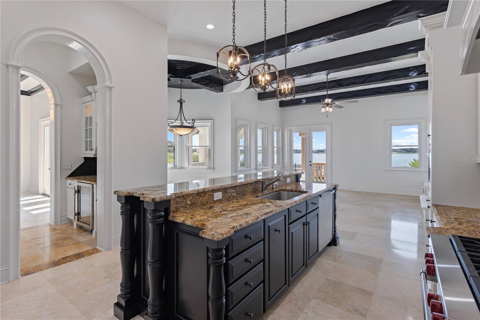 Lakefront on Lake Siena, remodeled, pool and boat dock, come and start enjoying Bella Collina for all its best amenities starting with your backyard!! Nestled within a private, guard-gated community spanning 1,900 pristine acres, this home offers more than just a place to live; it embodies a lifestyle statement. Just remodeled inside and out and also new windows and doors added, this custom villa redefines elegance, boasting 4,319 square feet of unparalleled luxury. Step inside and be captivated by the soaring ceilings, architecturally interesting beams, and the allure of travertine and hardwood flooring. Every detail in this home is a work of art. The gourmet kitchen, complete with a gas cooktop and upscale Wolf appliances, seamlessly blends form and function. A double-sided gas fireplace sets the stage for both intimate family gatherings and grandiose entertaining, warming both the interior and the outdoor pool deck. Wine aficionados will appreciate the dedicated wine cellar, capable of holding up to 600 bottles. Retreat to the expansive private master suite, your haven away from the world. Outside, a sumptuous pool surrounded by travertine decking. With the lake as a backdrop, this space is perfect for soaking up the Florida sunshine or enjoying serene evenings watching the sun dip below the horizon. Located just minutes from Winter Garden, you'll have easy access to the freshest farmer's markets, fabulous dining experiences, and top-tier shopping. Despite its convenient location, this home is comfortably outside the tourist district, while still being within reach of theme parks, Cocoa Beach, the Gulf Coast, and the bustling city of Orlando. Indulge in a lifestyle of unrivaled luxury and convenience with amenities such as a golf course designed by Nick Faldo, tennis courts, a gym, resort-style pools, spas, and a 75,000 sq ft clubhouse featuring a private restaurant. Your every desire will be fulfilled in this exclusive community. Can be sold with the lot next door.. ( Vacant lot 409 ) sellers also own that. Call for more details.